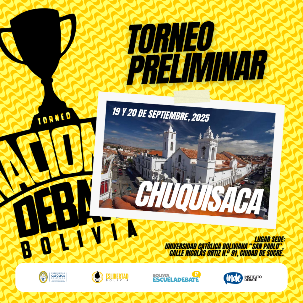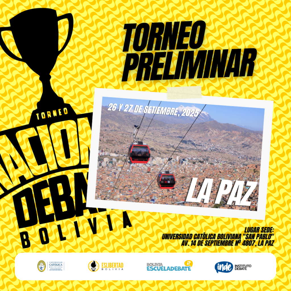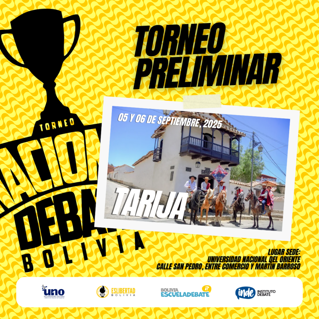 El #TOP2025BOLIVIA es una etapa previa al #TID2025TACNA cuyas siglas son del Torneo Internacional de Debate a realizarse en Tacna.